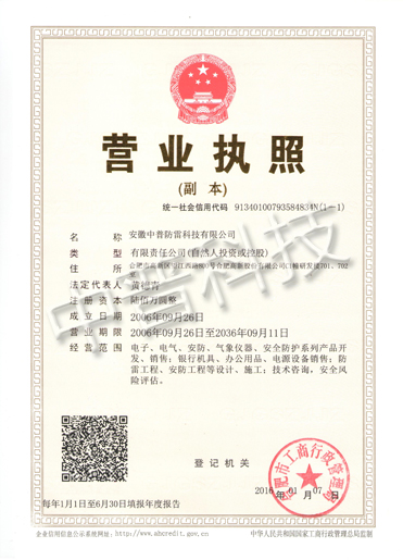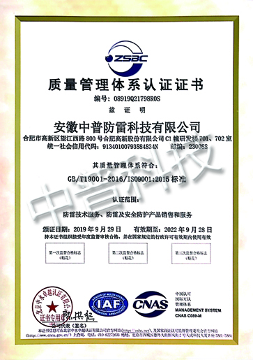 中普防雷質量認證體系證書