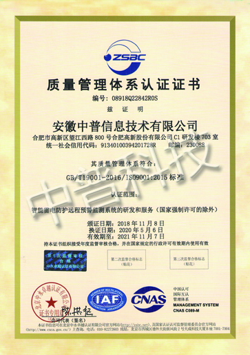 中普信息質量認證體系證書英文