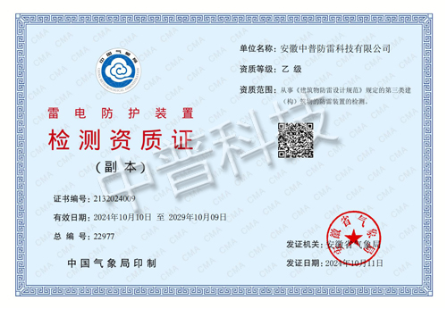 雷電防護裝置檢測資質證